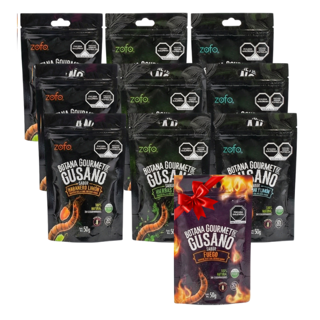 Sal de gusano a base del insecto Zophoba Morio e ingredientes naturales como variedades de chiles secos, limón, epazote, pimientas,